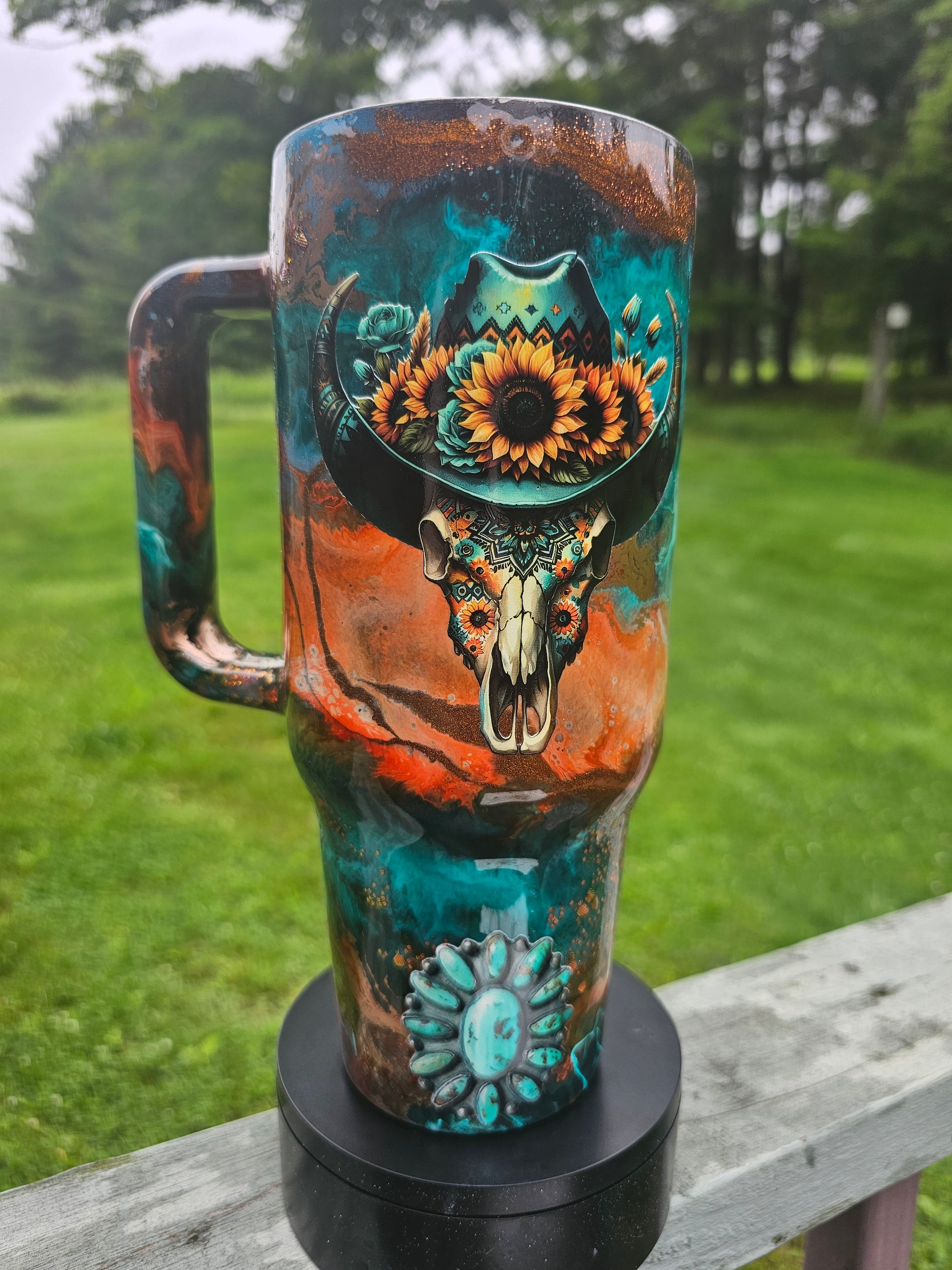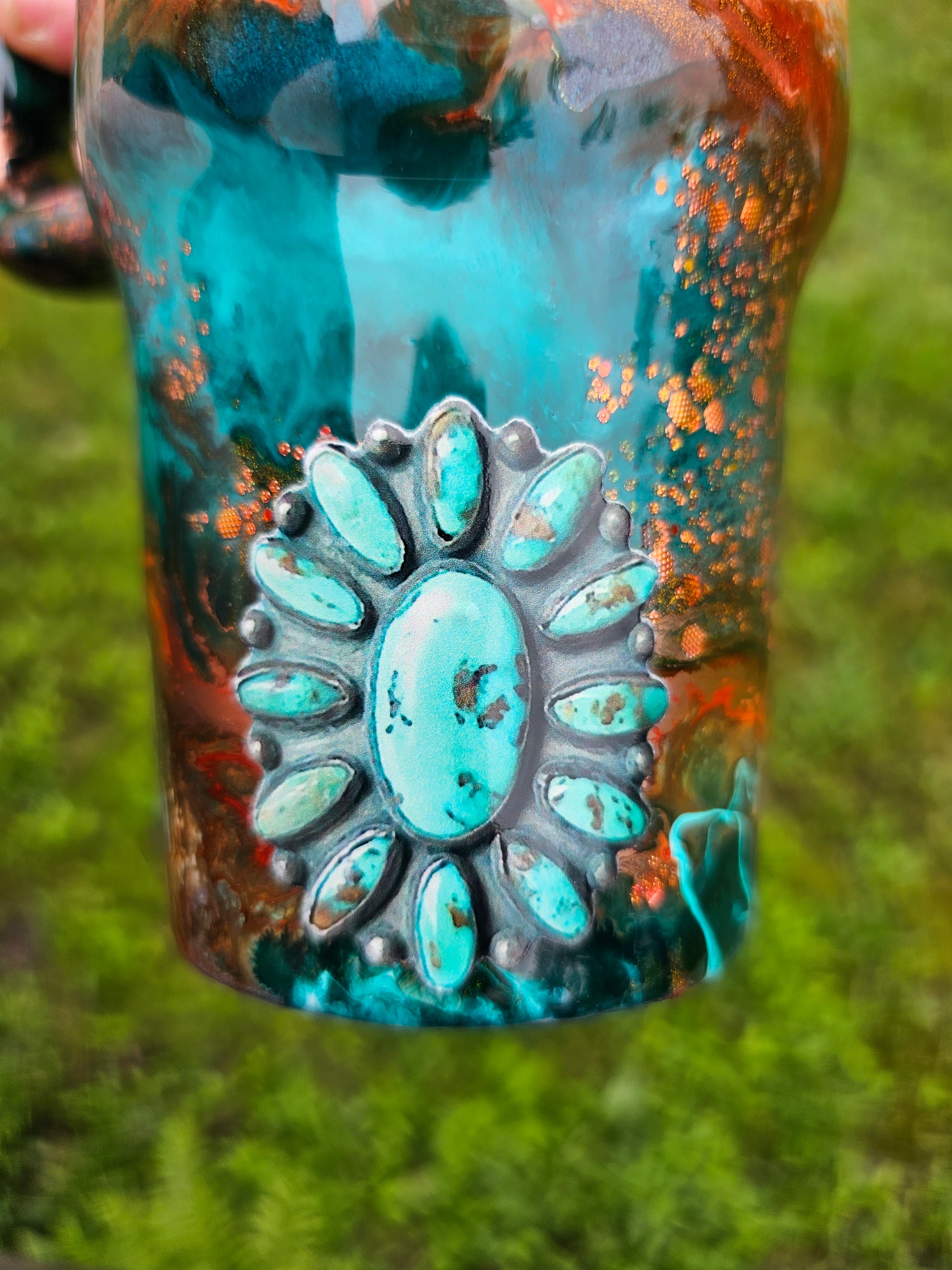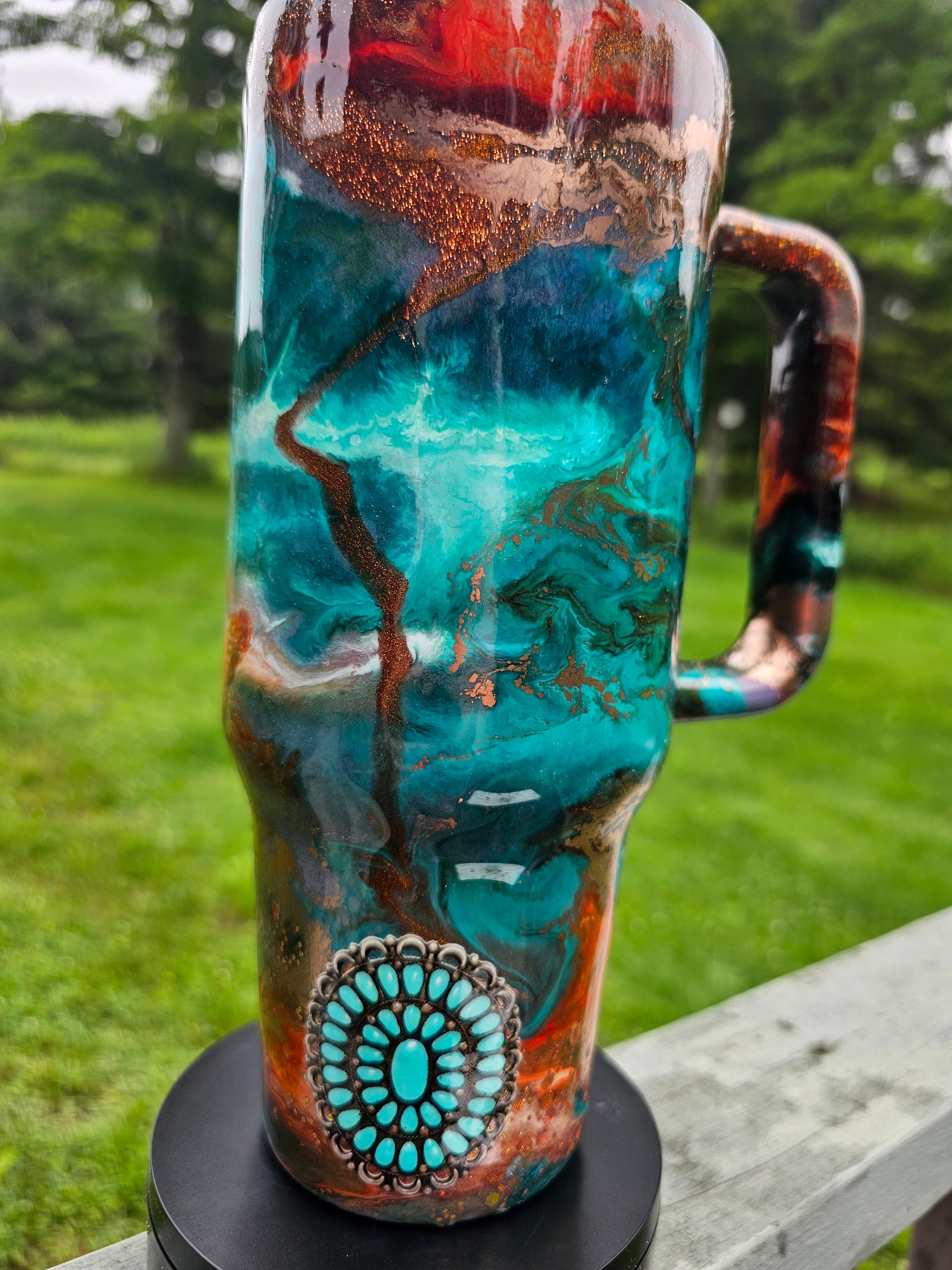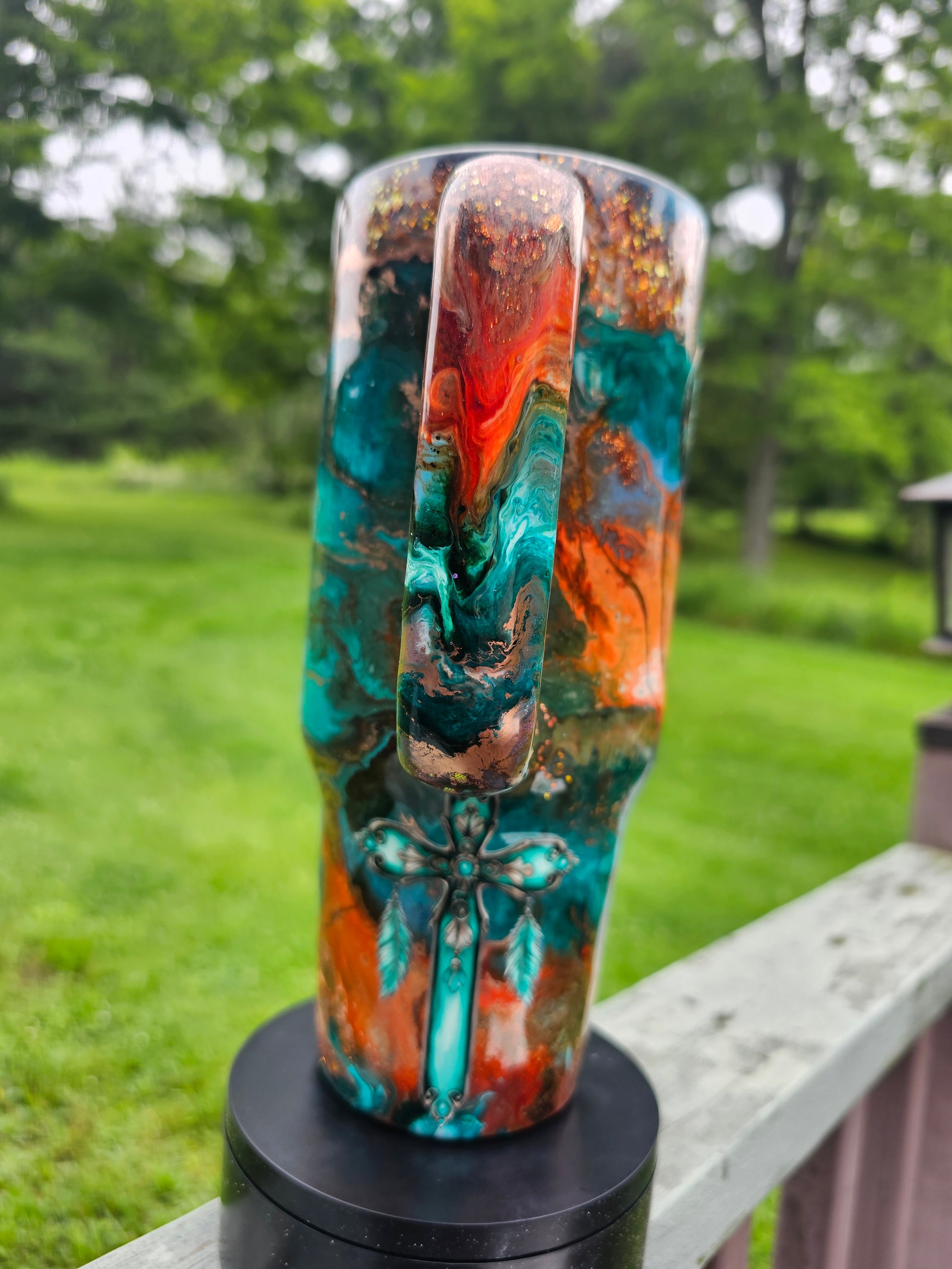 Custom epoxy tumbler. As with all epoxy tumblers hand wash only, protect from extreme weather and do not drop. This is a hand made item and although every attempt is made to create a beautiful finish, slight imperfections may exist.